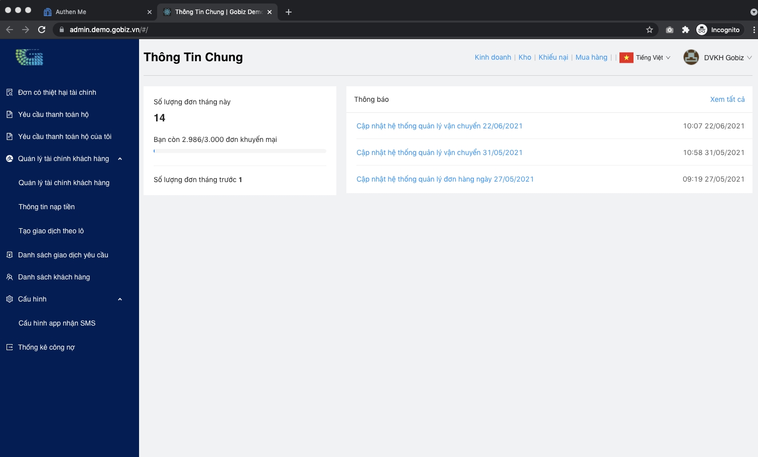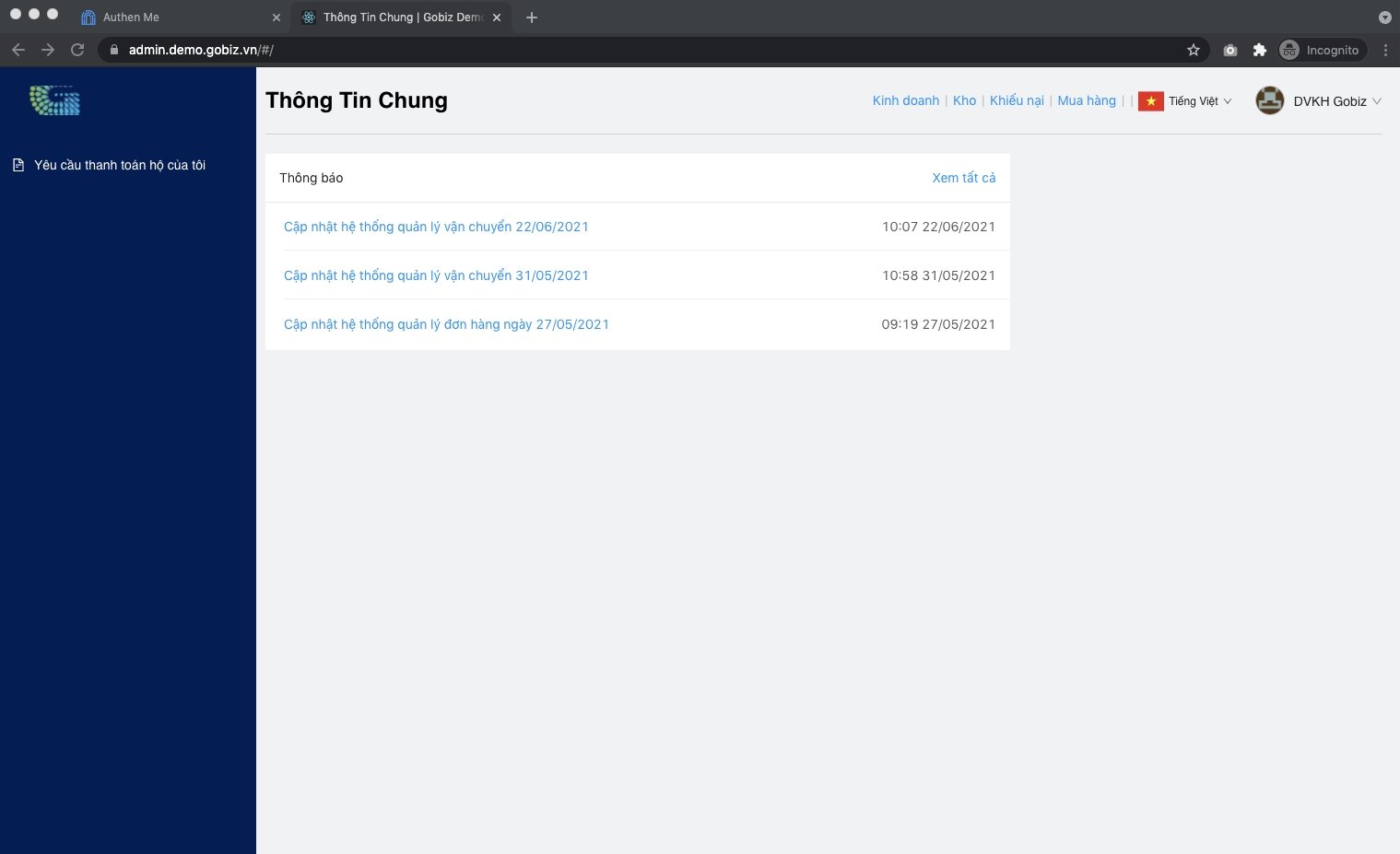 Hệ thống quản lý Mua hàng: Mua. tên miền (mua.demo.gobiz.vn)