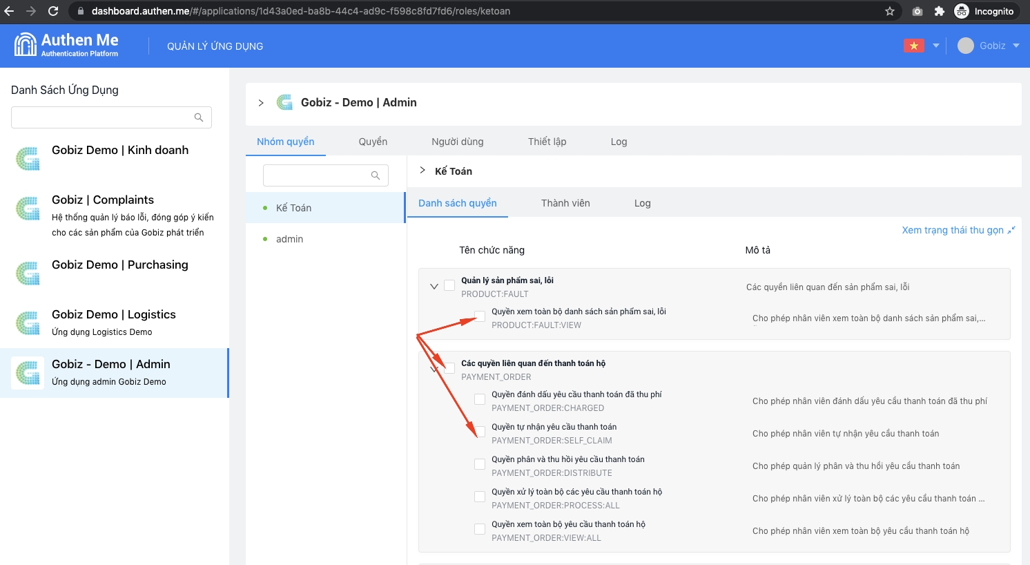 Sau khi tạo tài khoản thành công, quản lý sẽ dựa theo vị trí nhân sự và tính chất công việc để tạo những nhóm quyền riêng cho từng khâu xử lý.