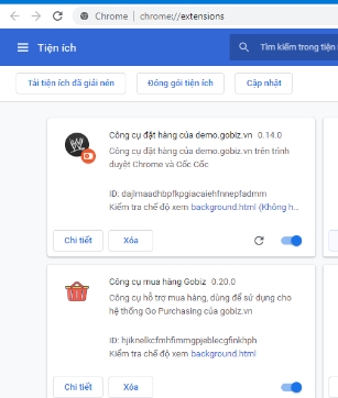 • Mở tiện ích mở rộng trên trình duyệt Chrome/Cốc Cốc : chrome://extensions/