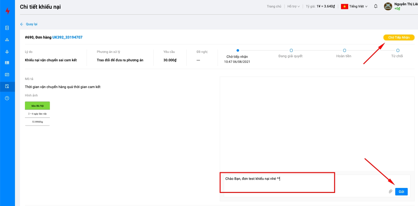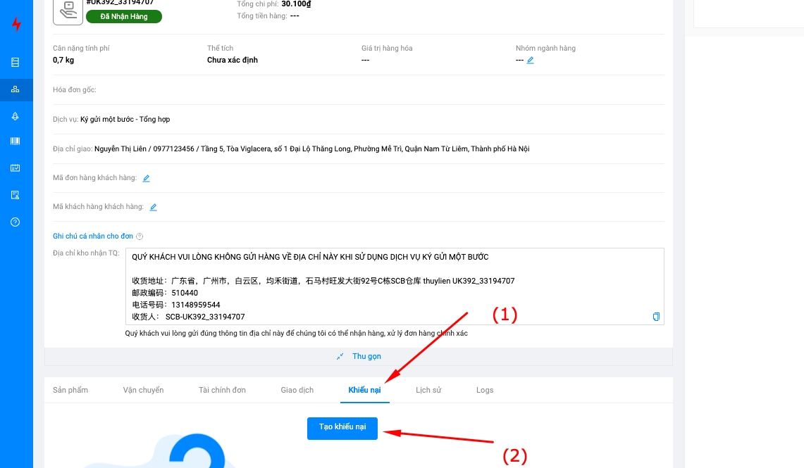 Để tạo khiếu nại dịch vụ trên đơn hàng, Quý khách thực hiện theo các bước như sau: