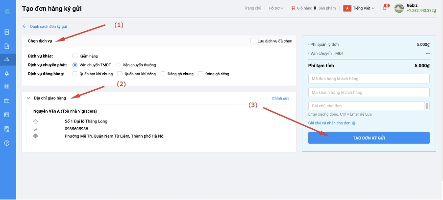 2.2 HƯỚNG DẪN TẠO ĐƠN KÝ GỬI BẰNG CÔNG CỤ TRÊN TRANG MUA HÀNG