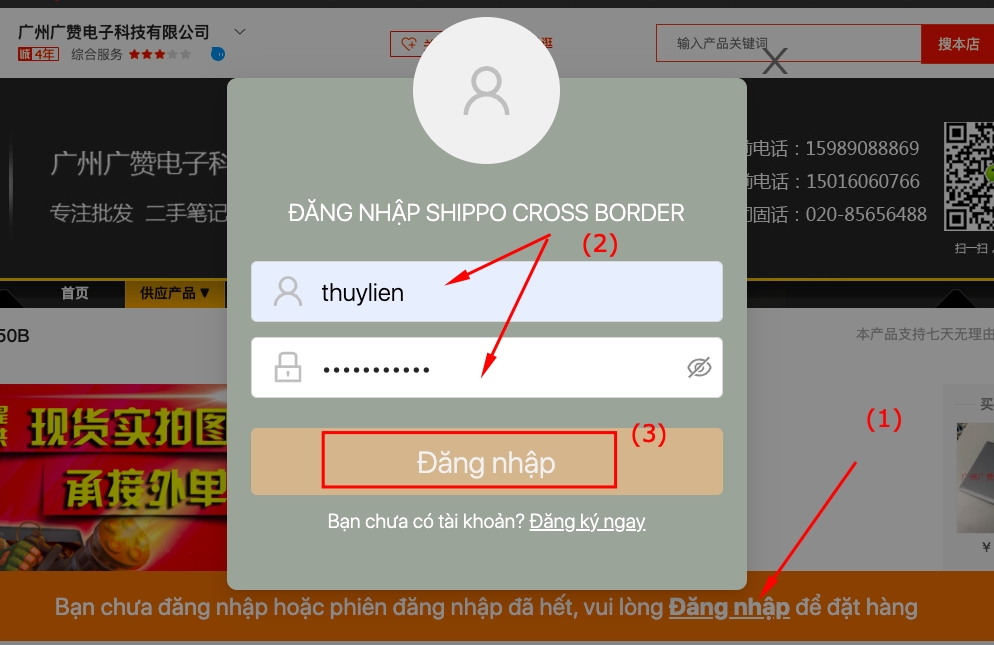 Bước 1: Đăng nhập tài khoản mua hàng (taobao, tmall, 1688).