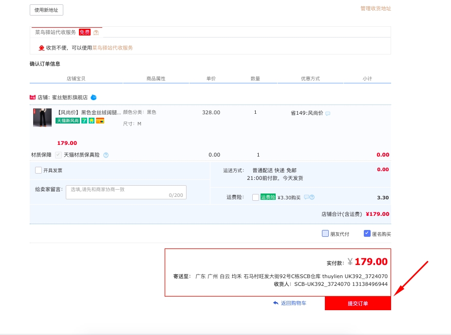 - Địa chỉ nhận hàng/收货地址:广东省,广州市,白云区,均禾街道,石马村旺发大街92号C栋SCB仓库 - User + mã đơn hàng (mã đơn hệ thống tự điền)