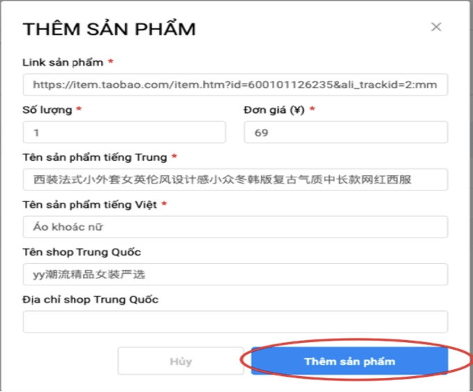 Thêm sản phẩm và mã vận đơn TQ