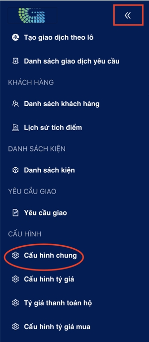 Truy cập Menu => Chọn menu Cấu hình => Chọn Cấu Hình Chung