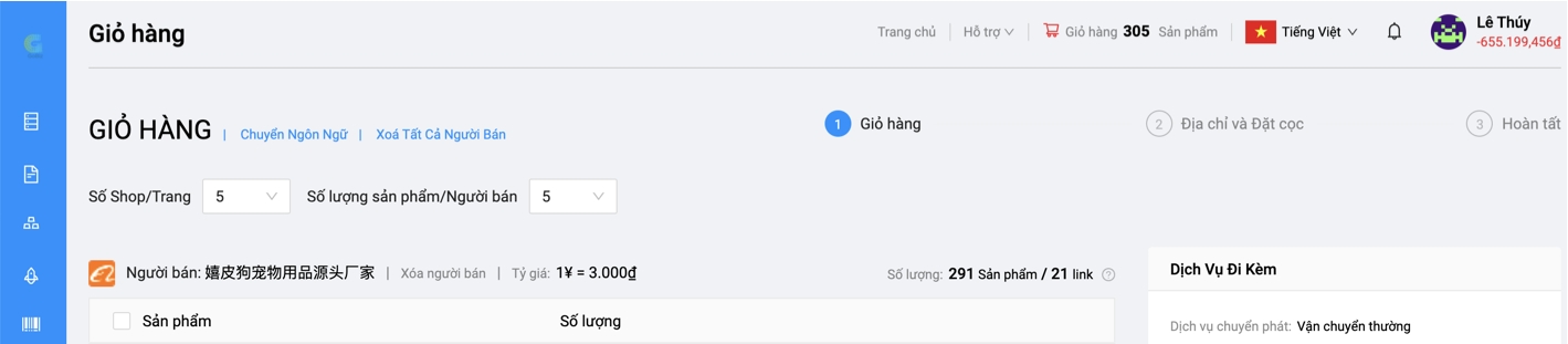 Khi chọn BẬT và Lưu cấu hình đơn mua hộ, dịch vụ mua hộ (order) sẽ được kích hoạt, giao diện của khách sẽ xuất hiện giỏ hàng và danh sách đơn mua hộ.
