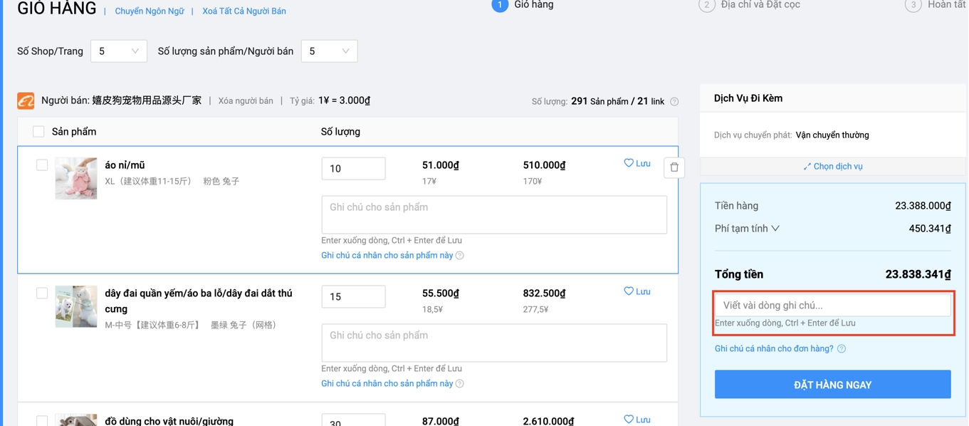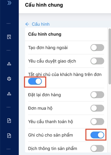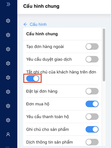 Khi chọn TẮT và Lưu cấu hình, tại giao diện giỏ hàng khách có thể ghi chú thông tin cần lưu ý của đơn hàng cho đơn vị cung cấp dịch vụ order.
