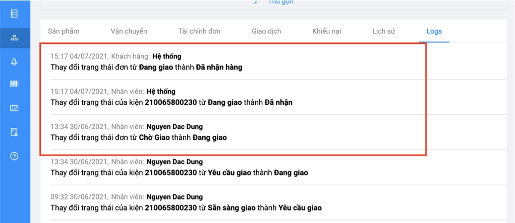 Đơn hàng tự động đổi trạng thái sang Đã nhận hàng.