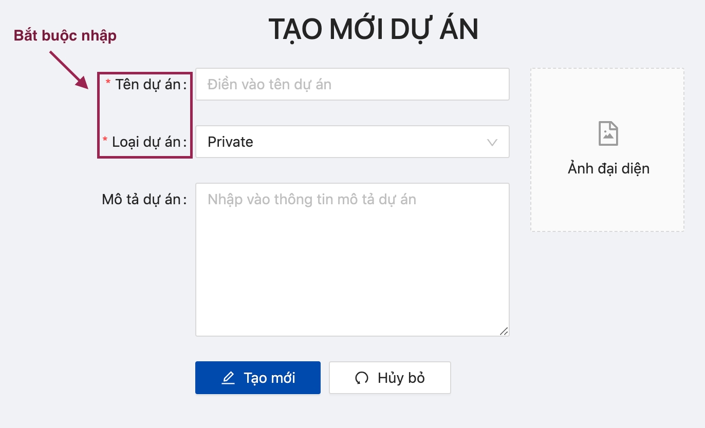 Tạo mới dự án