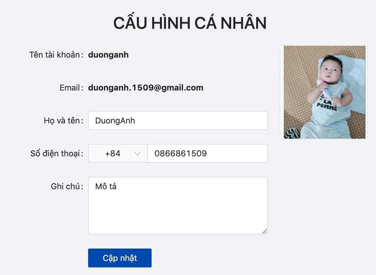 Mục đích: Hệ thống cho phép người dùng thiết lập các thông tin của tài khoản