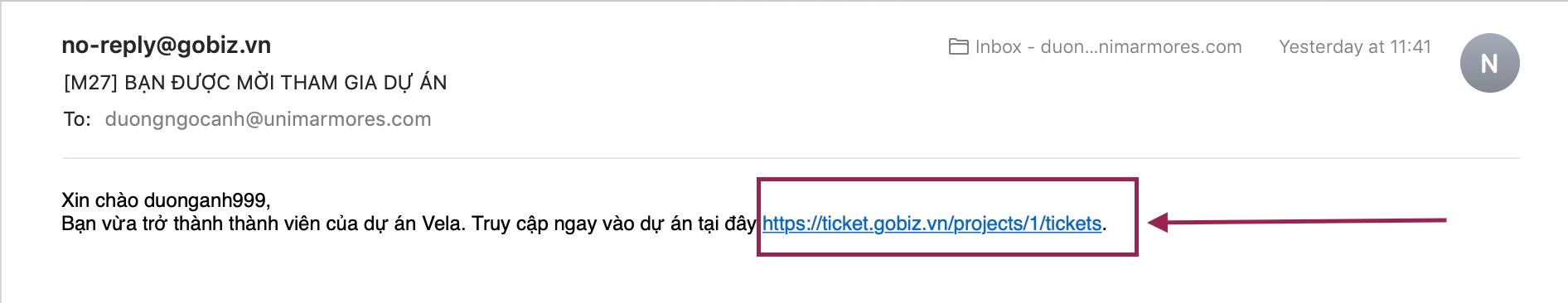 Lưu ý: Trường hợp người dùng được mời vào 1 dự án đã có, hệ thống sẽ gửi email cho người dùng và người dùng tiến hành truy cập vào hệ thống theo đường link được gửi qua email.