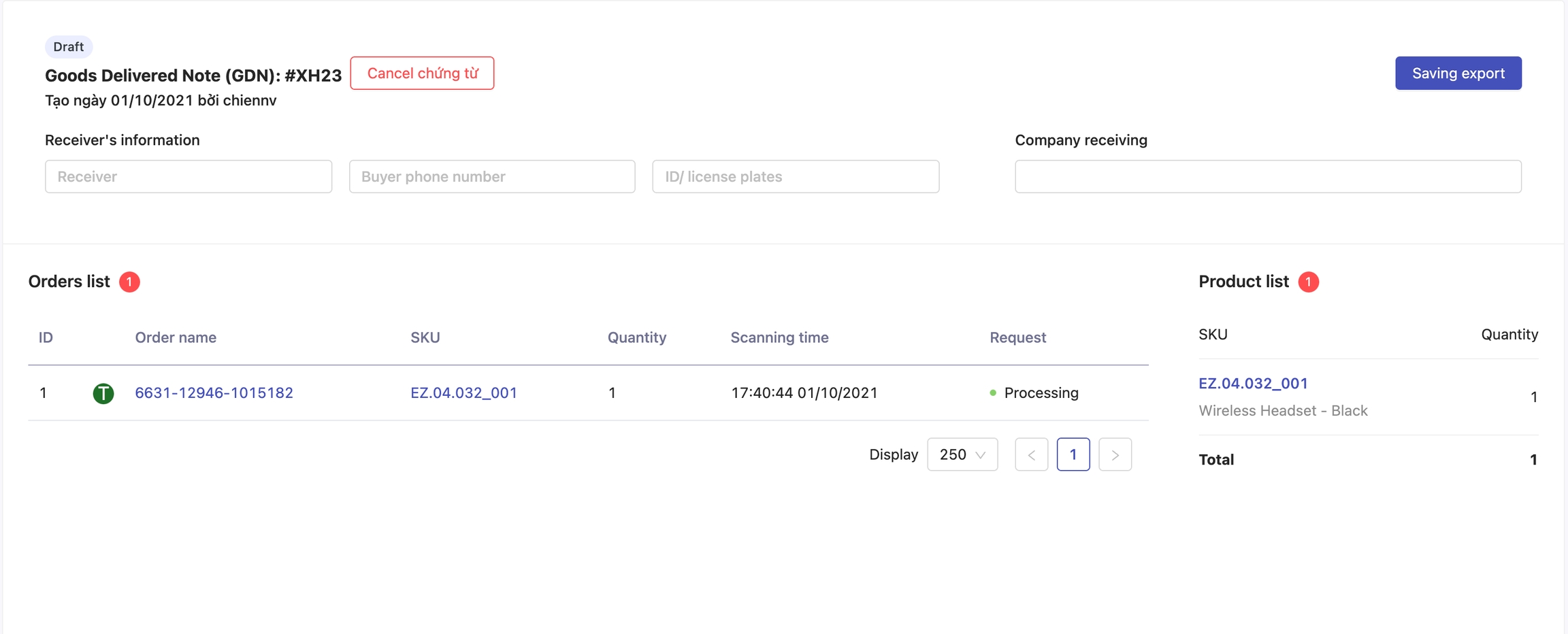 Xuất kho theo đơn hàng