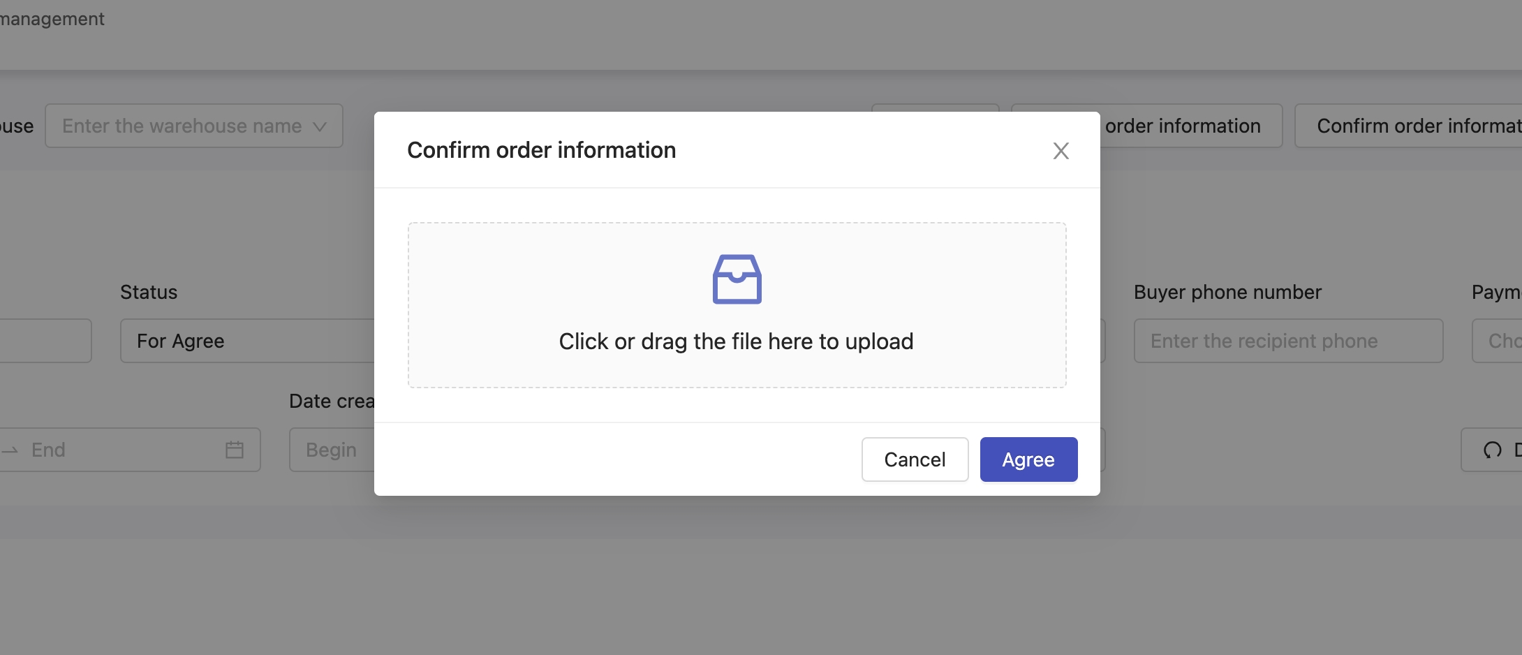Step 5: Click on "Confirm order" and upload file on the system to confirm that the order is available for dispatch