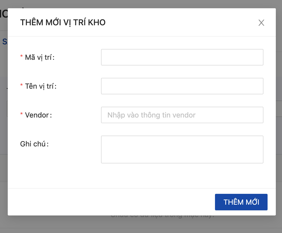 Tại Tab Danh sách vị trí, cho phép người dùng xem danh sách, tạo mới & cập nhất các vị trí kho trong hàng. Người dùng có thể chia kho hàng theo các vị trí thuộc Vendor và vào chức năng này để cấu hình các vị trí. Có thể gán nhiều Vendor vào 1 vị trí kho