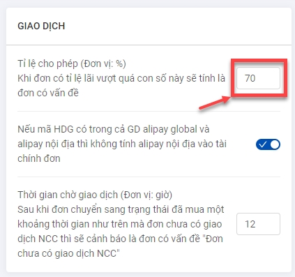 Khi tỉ lệ lợi nhuận đơn được tính theo công thức mà vượt quá ngưỡng cấu hình thì hiển thị cảnh báo.