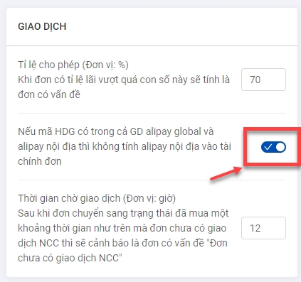 1.3 Cấu hình mã HDG có trong cả GD alipay global và alipay nội địa thì không tính alipay nội địa vào tài chính đơn