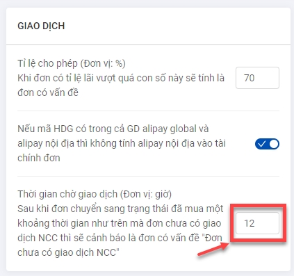 Bước 1: Quản lý nhập giá trị vào ô Thời gian chờ giao dịch (Đơn vị: giờ) và nhấn [Lưu]