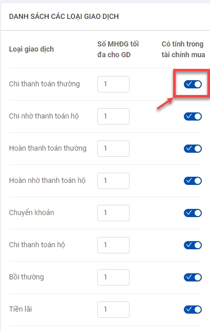Bước 2: Quản lý chọn BẬT cấu hình và nhấn [Lưu] để tính trong tài chính mua.