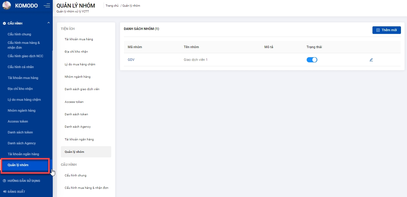 Bước 1: Quản lý truy cập trang Cấu hình từ menu bên trái, chọn Quản lý nhóm.