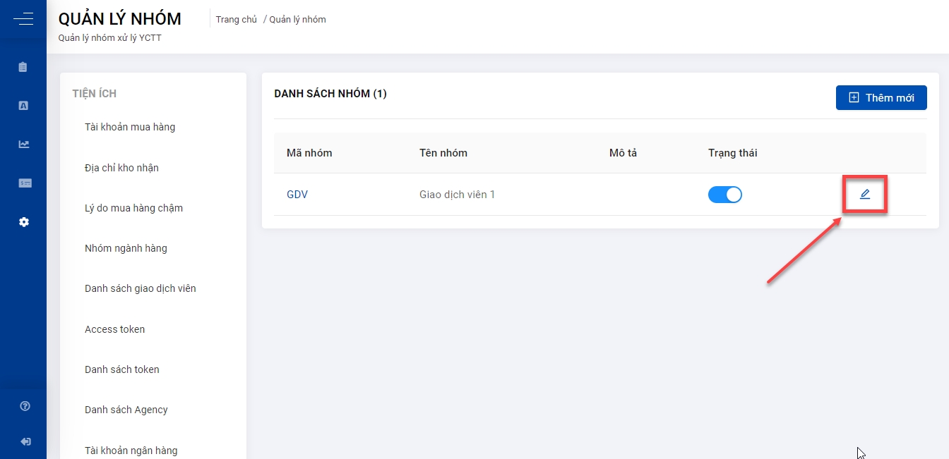 Cách 1: quản lý click vào icon . Các thông tin sửa nhóm giống như khi thêm mới.