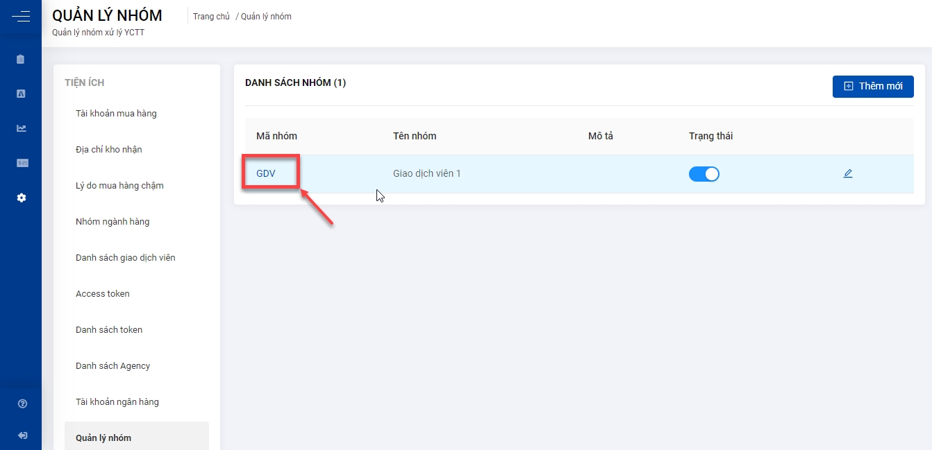 Quản lý click chọn Mã nhóm để xem Thông tin chi tiết nhóm và sau đó nhập username/email nhân viên và click Thêm mới để thêm nhân viên quỹ vào nhóm.