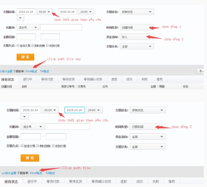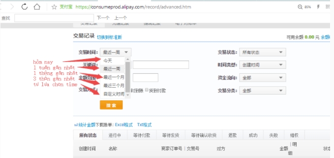 Cách xuất file giao dịch alipay