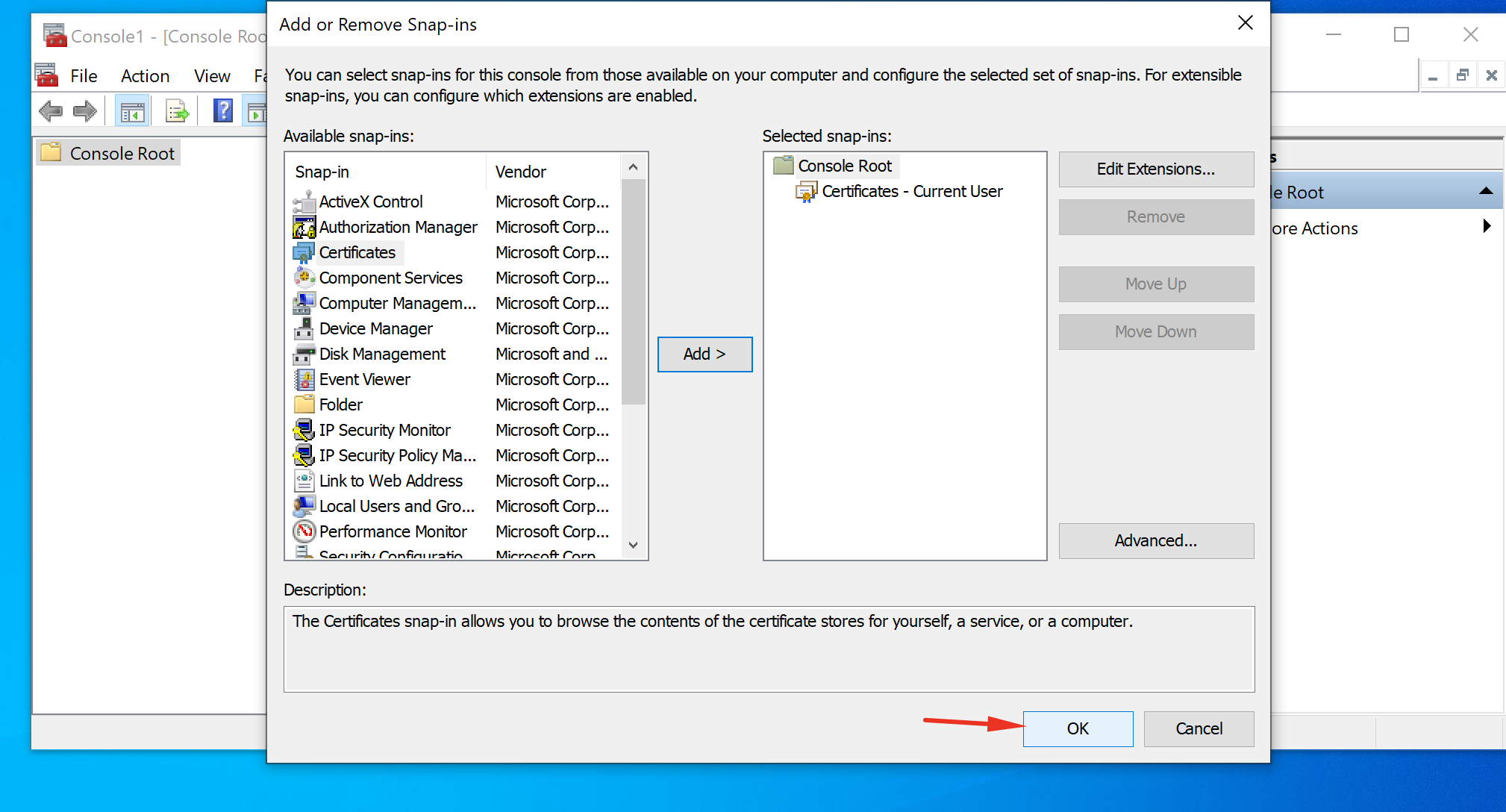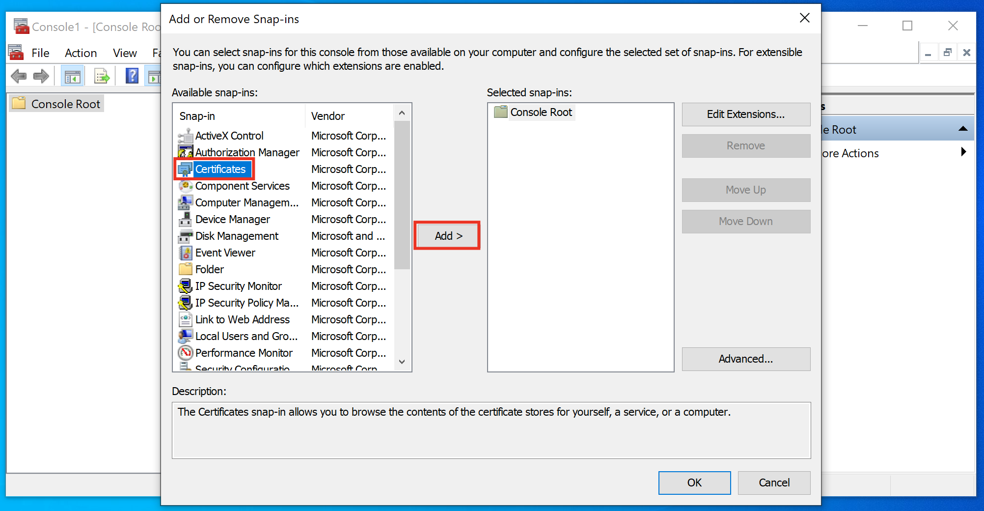 Bước 4: Chọn Certificates