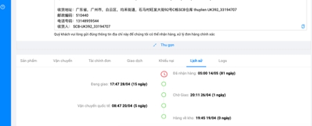 • Lịch sử: Quý khách kiểm tra được trạng thái hiện tại của đơn, lộ trình của toàn bộ đơn hàng trước đó..