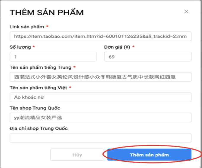 Quý khách truy cập vào hệ thống quản lý đơn ký gửi, click vào chi tiết “Đơn ký gửi” -> Chọn “Thêm sản phẩm” và điền đầy đủ các thông tin theo yêu cầu (thông tin có dấu là thông tin bắt buộc) -> Chọn *“Thêm sản phẩm” như hình: