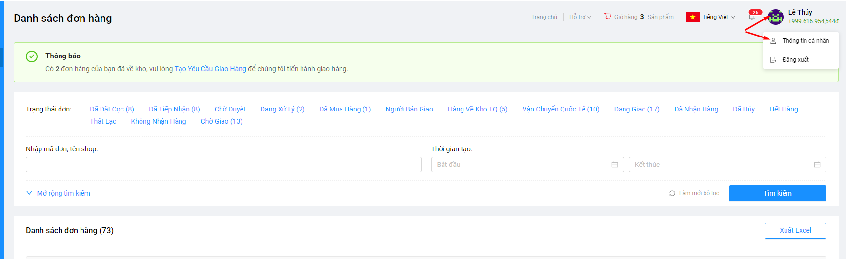 Quý khách có thể tham khảo thêm cách tạo địa chỉ mới tại bài viết hướng dẫn Đặt cọc đơn hàng