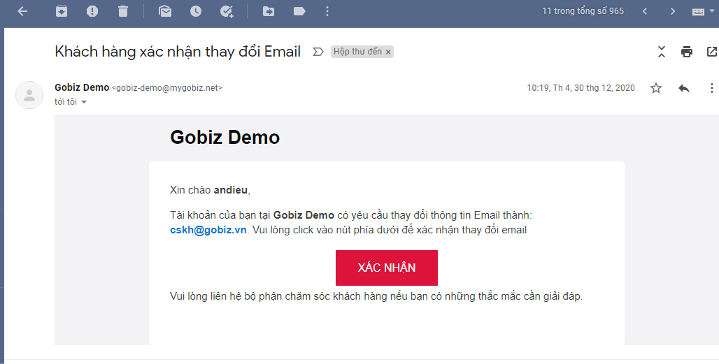 Lưu ý: Để thay đổi địa chỉ Email, Quý khách cần truy cập vào Email để xác nhận thông tin (sau khi điền địa chỉ email mới).