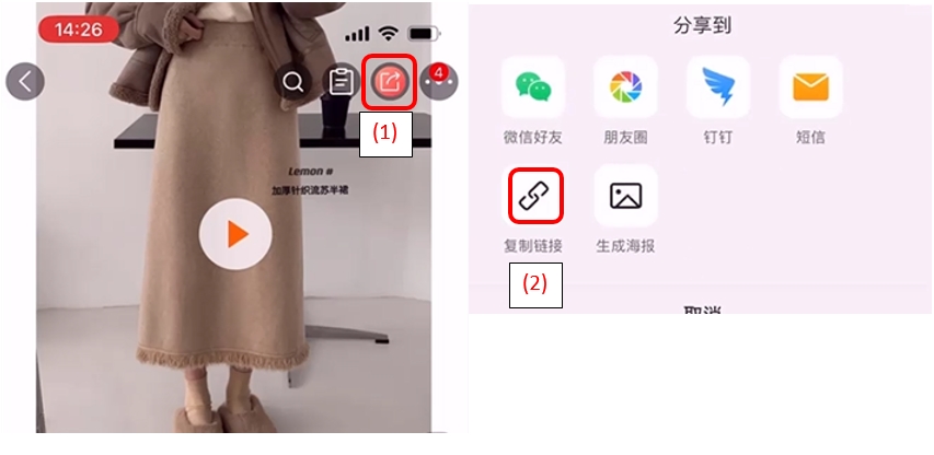 Quý khách chọn sản phẩm trên trang, ấn vào biểu tượng (1), (2) để lấy link sản phẩm