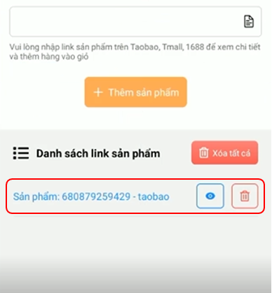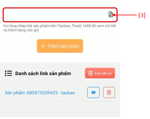 Quý khách dán link sản phẩm vào hộp thoại và ấn (3) -> Thêm sản phẩm, link sản phẩm sẽ xuất hiện ở dưới danh sách link sản phẩm