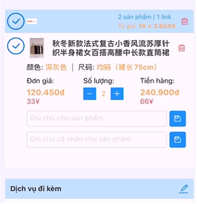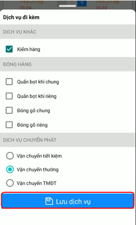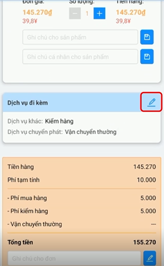 Quý khách kiểm tra số lượng, chọn biểu tượng cây bút để lựa chọn dịch vụ đi kèm