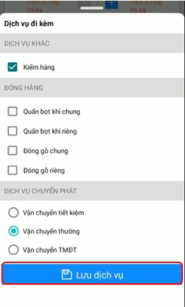 Quý khách chọn dịch vụ đi kèm và ấn Lưu dịch vụ