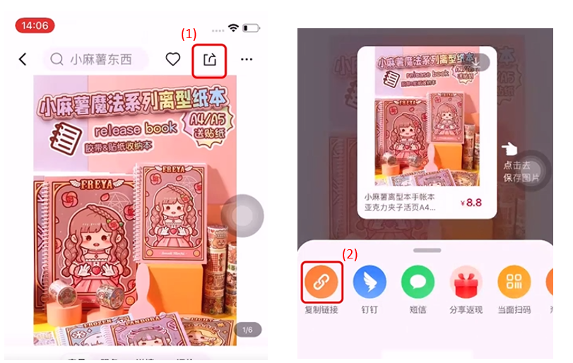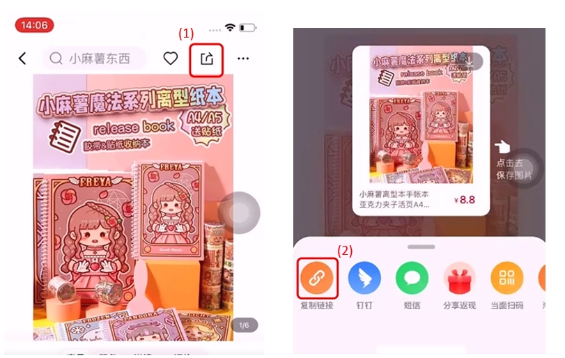 Quý khách chọn sản phẩm trên trang, ấn vào biểu tượng (1), (2) để lấy link sản phẩm