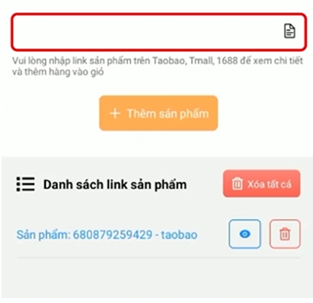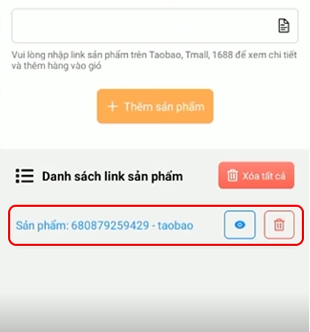 Quý khách dán link sản phẩm vào hộp thoại và ấn Thêm sản phẩm, link sản phẩm sẽ xuất hiện ở dưới danh sách link sản phẩm