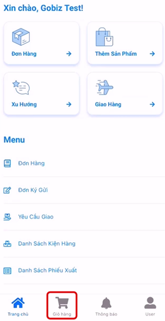 Tại giao diện chính, quý khách tick chọn hình giỏ hàng