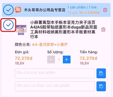 Quý khách tick chọn đơn hàng muốn mua, kiểm tra lại số lượng, đơn hàng, tiền hàng.