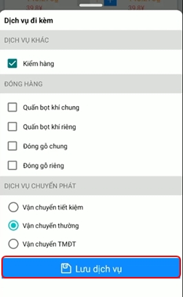 Quý khách chọn dịch vụ đi kèm và ấn Lưu dịch vụ