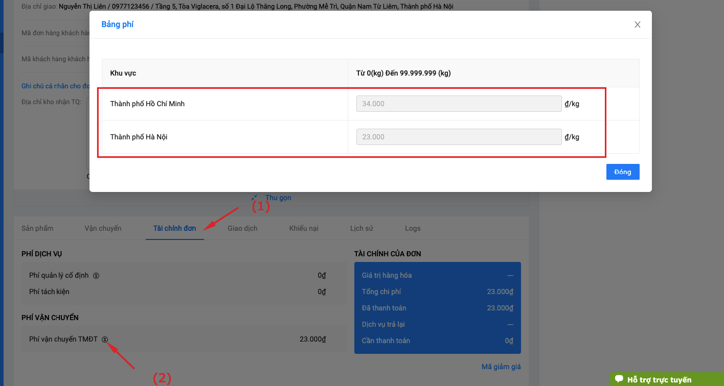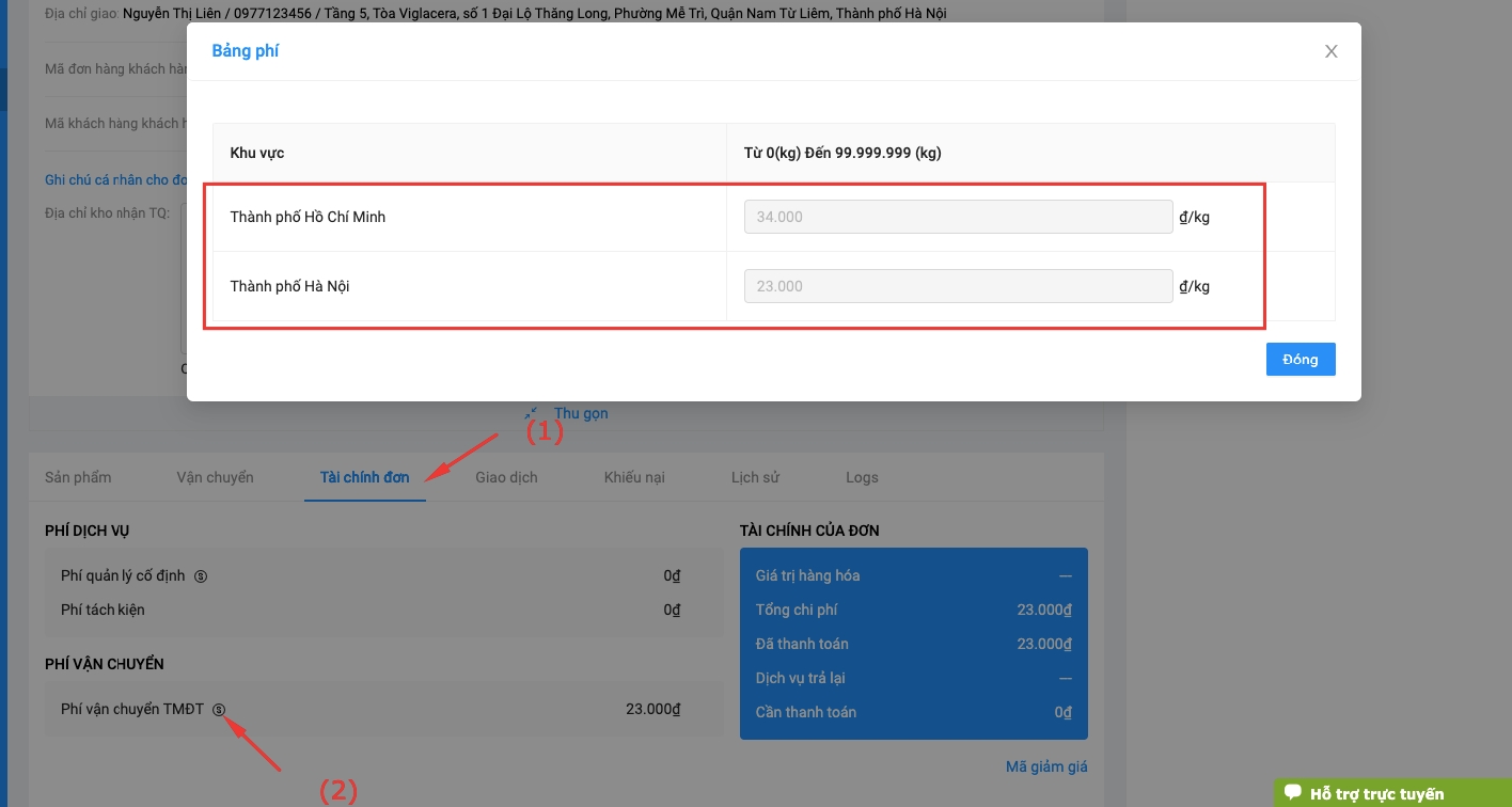 Tài chính đơn: Kiểm tra được thông tin liên quan đến chi phí (phí dịch vụ, phí vận chuyển…)