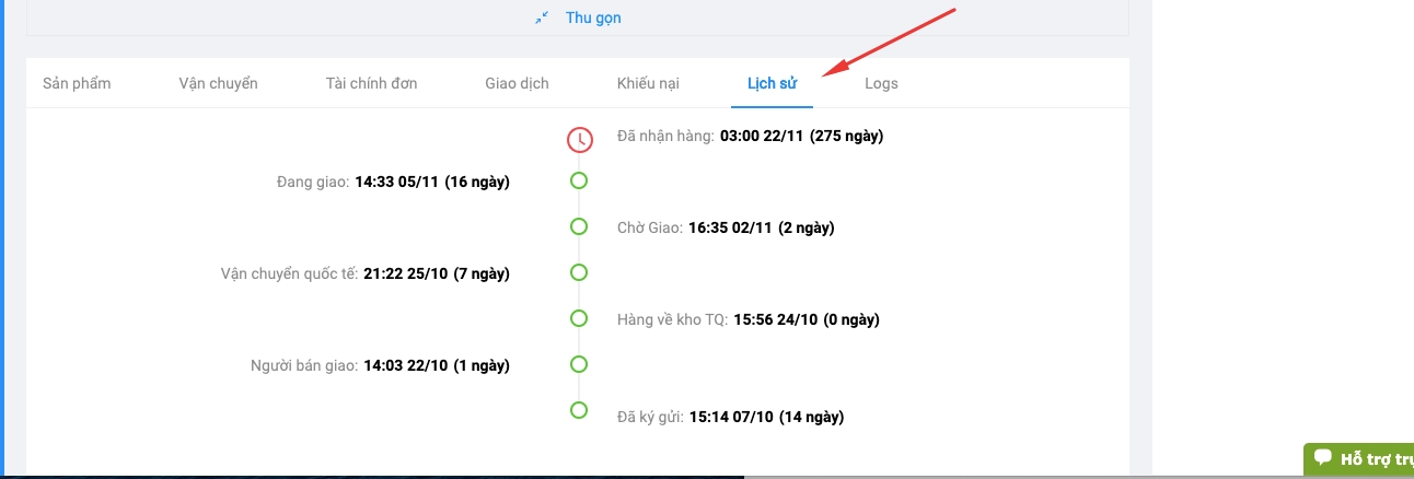 Lịch sử: Quý khách kiểm tra được trạng thái hiện tại của đơn, lộ trình của toàn bộ đơn hàng trước đó..
