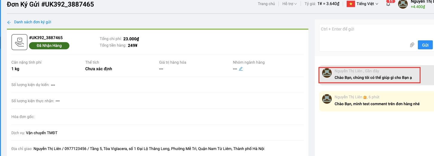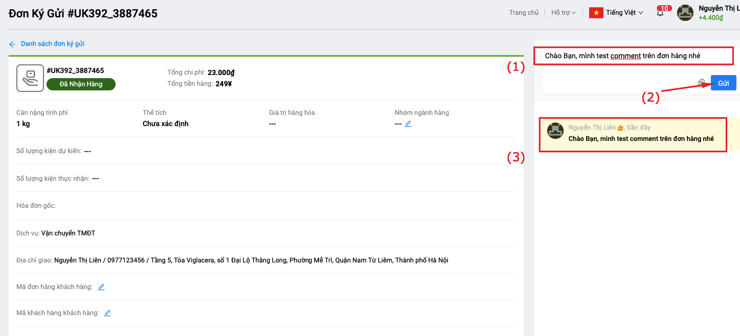 3. Cách trao đổi thông tin từ trên đơn hàng
