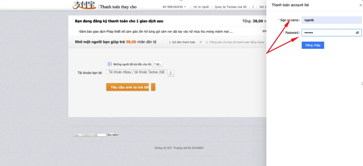 Bước 5: Quý khách đăng nhập tài khoản than hoán hộ như hình