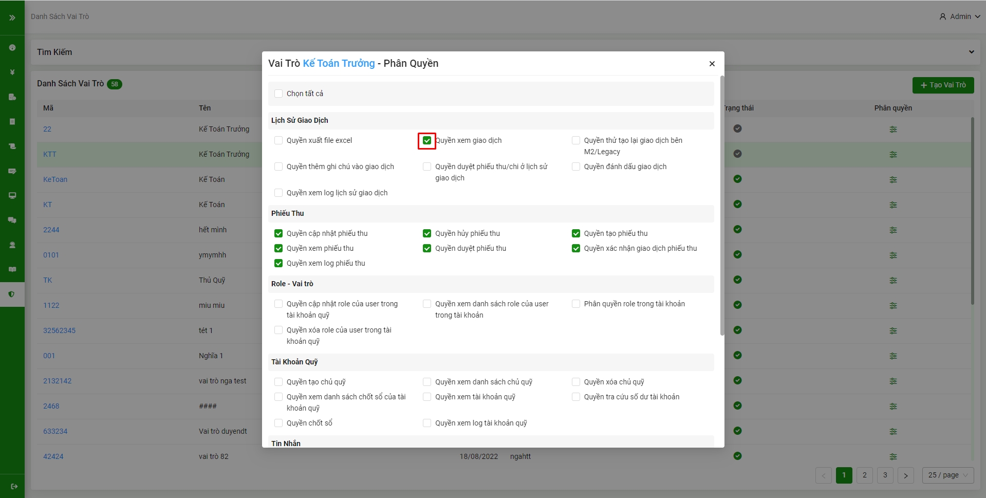 Sau khi tạo vai trò xong, Quý khách cần thực hiện phân quyền để nhân viên có thể thao tác/sử dụng dịch vụ trên hệ thống