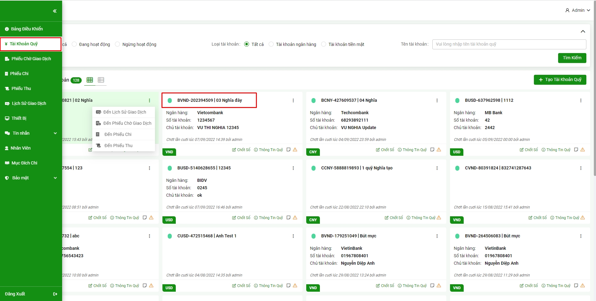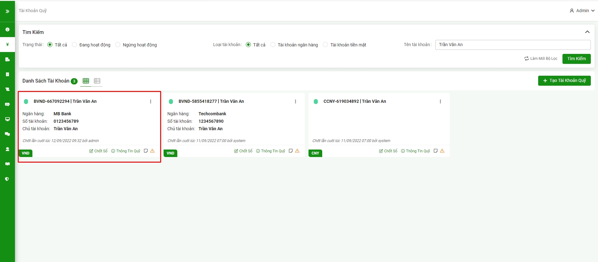 3. Tạo tài khoản quỹ