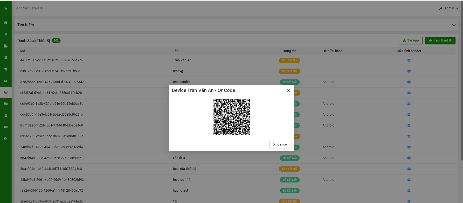 Bước 3: Sau khi thêm thiết bị thành công, hệ thống sẽ trả về mã QR CODE, Quý khách mở app mobile để quét mã QR và cài đặt app mobile