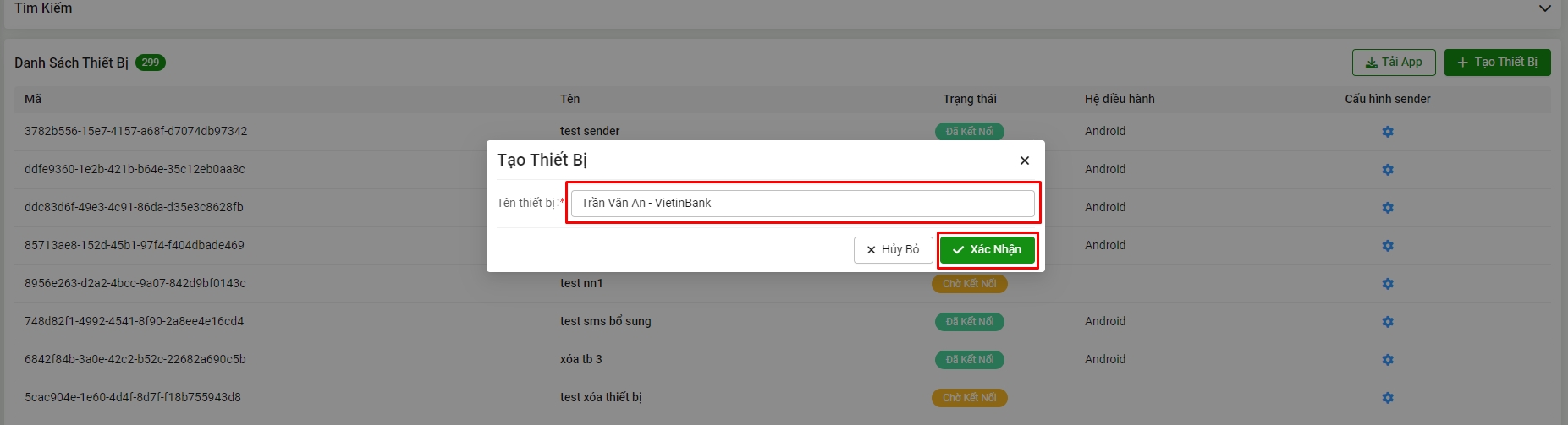 Bước 2: Nhập tên thiết bị => chọn xác nhận
