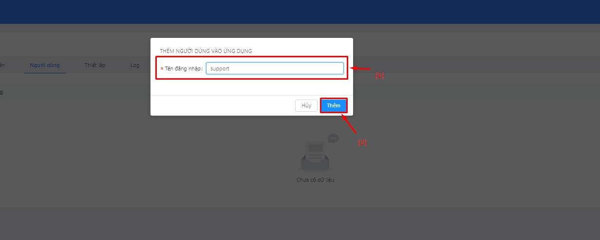 Bước 2: Điền đầy đủ Tên đăng nhập (1) của nhân viên và chọn nút Thêm (2)