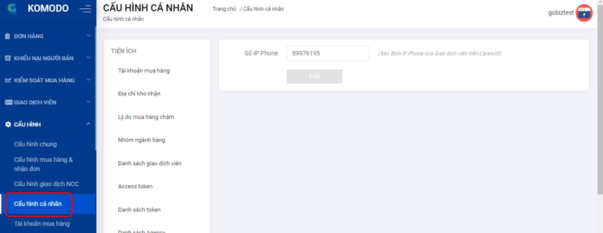 Mục đích: Xác định số IP phone của giao dịch viên trên caresoft